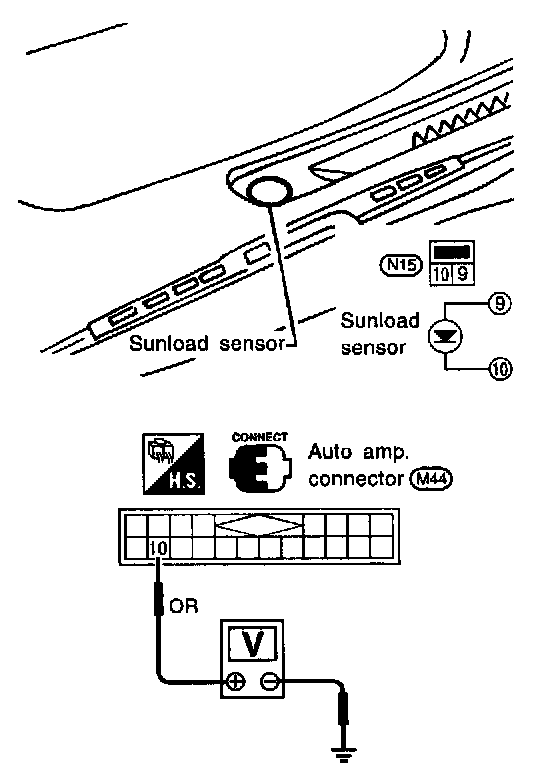 When checking sunload sensor, select a place where sun shines directly on it.