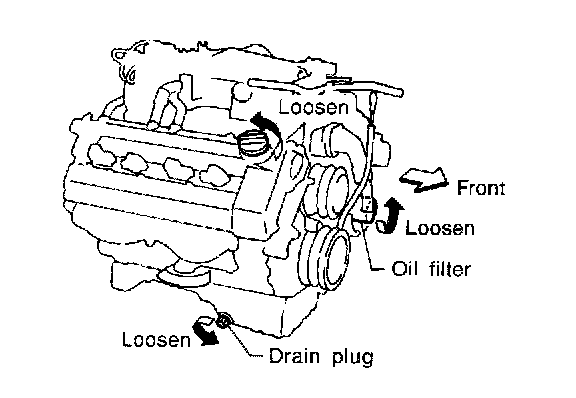 3. Remove drain plug and oil filler cap.
