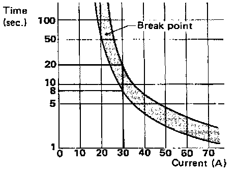 For example, when current is 30 A, the circuit is broken within 8 to 20 seconds.