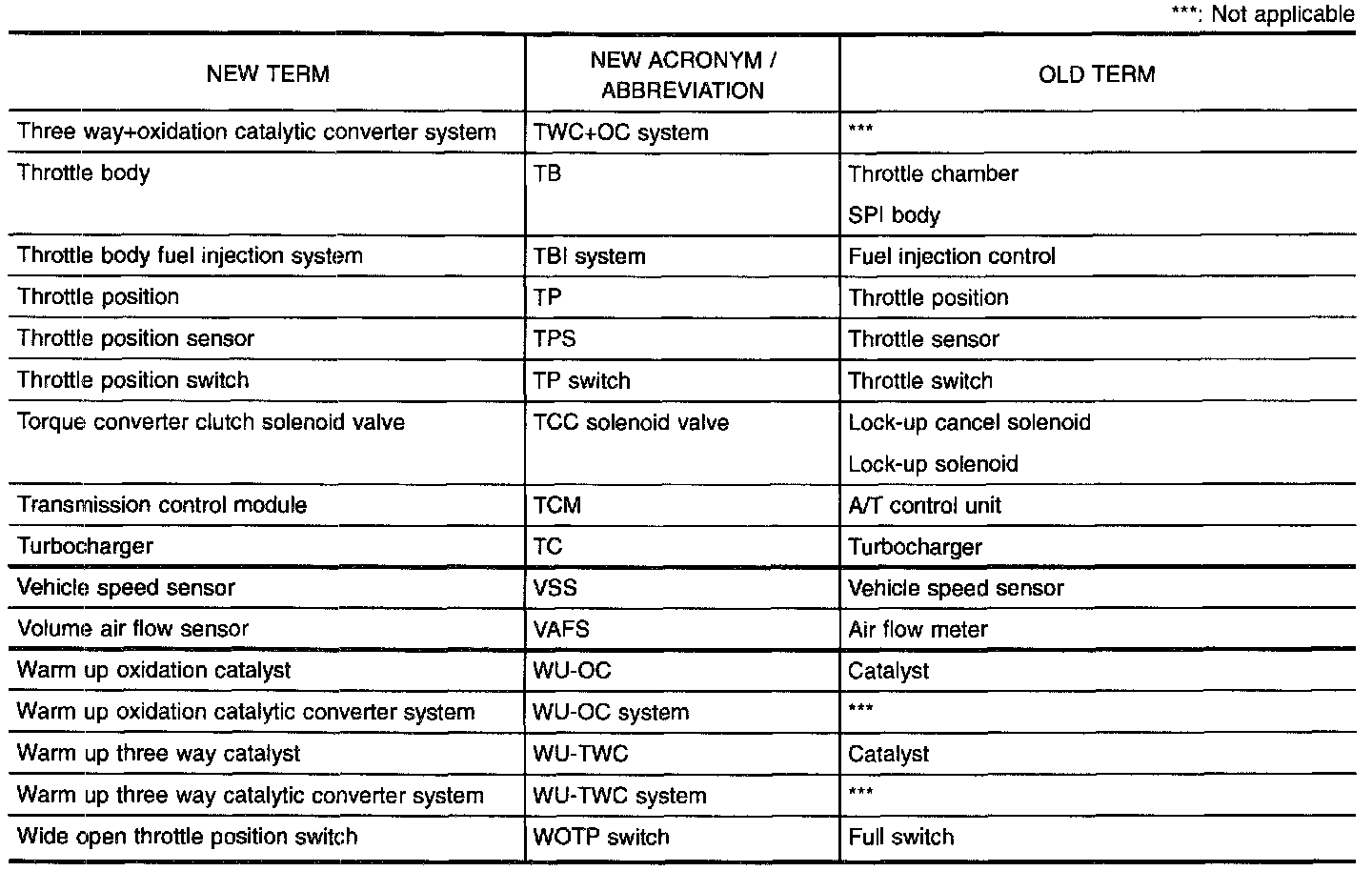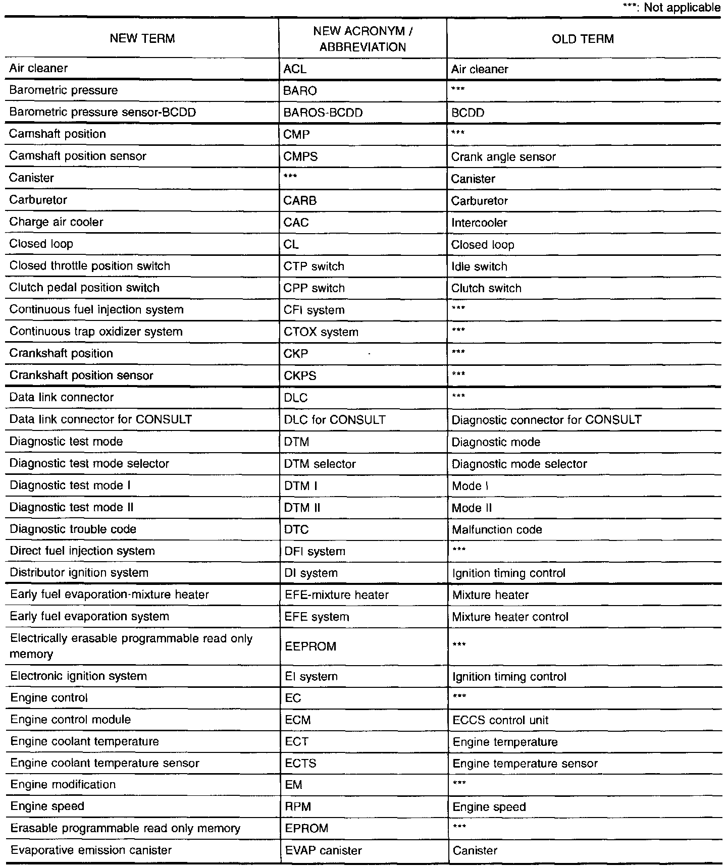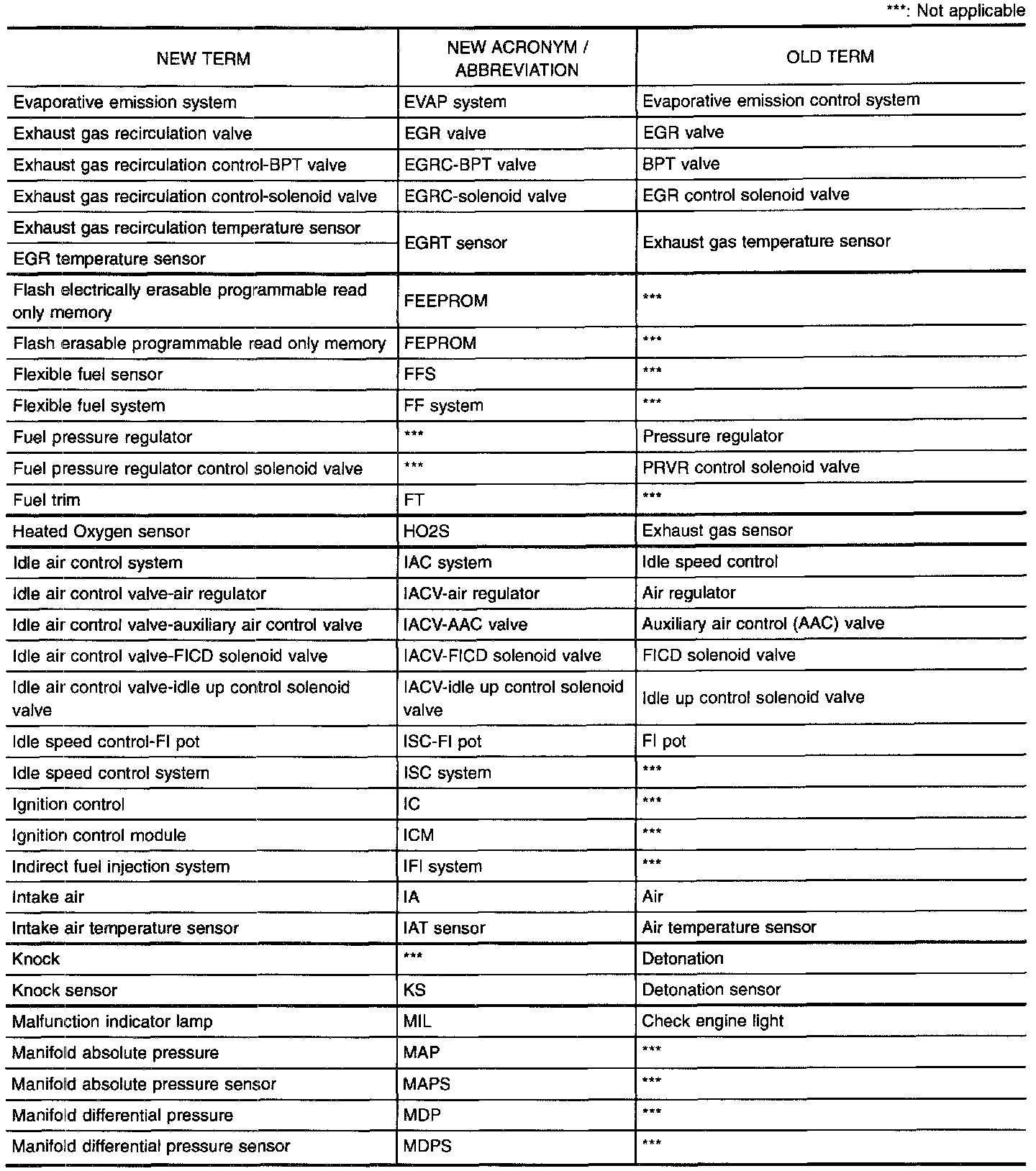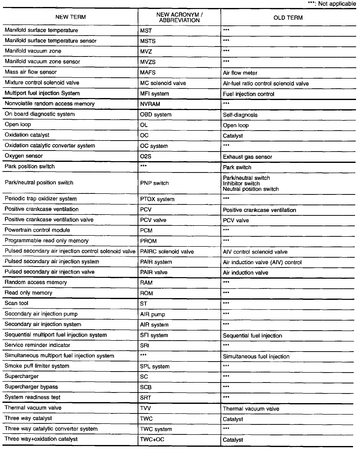 All emission related terms used in this publication in accordance with SAE J193O are listed. Accordingly, new terms, new acronyms/abbreviations and old terms are listed in the following chartAir Cleaner through Evaporative emission canister