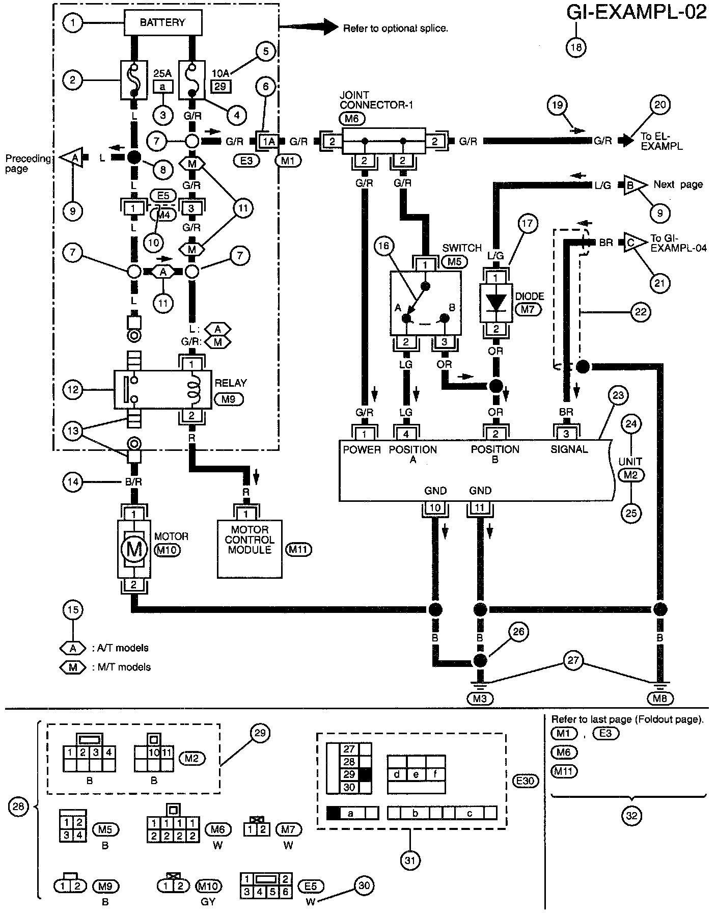 - Connector numbers in a signal circle (M33) indicate harness connectors.