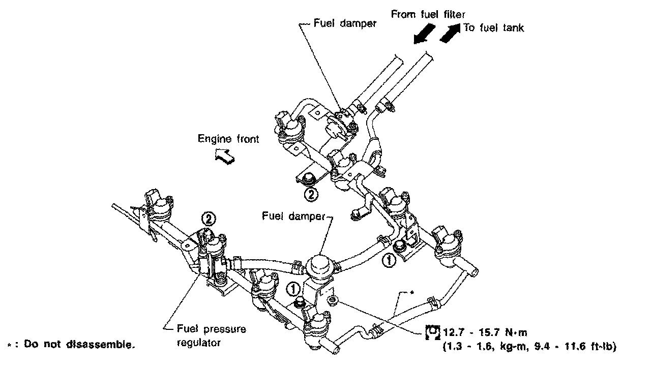 CAUTION: After properly connecting fuel hose to injector and fuel tube assembly, check connection for fuel leakage.