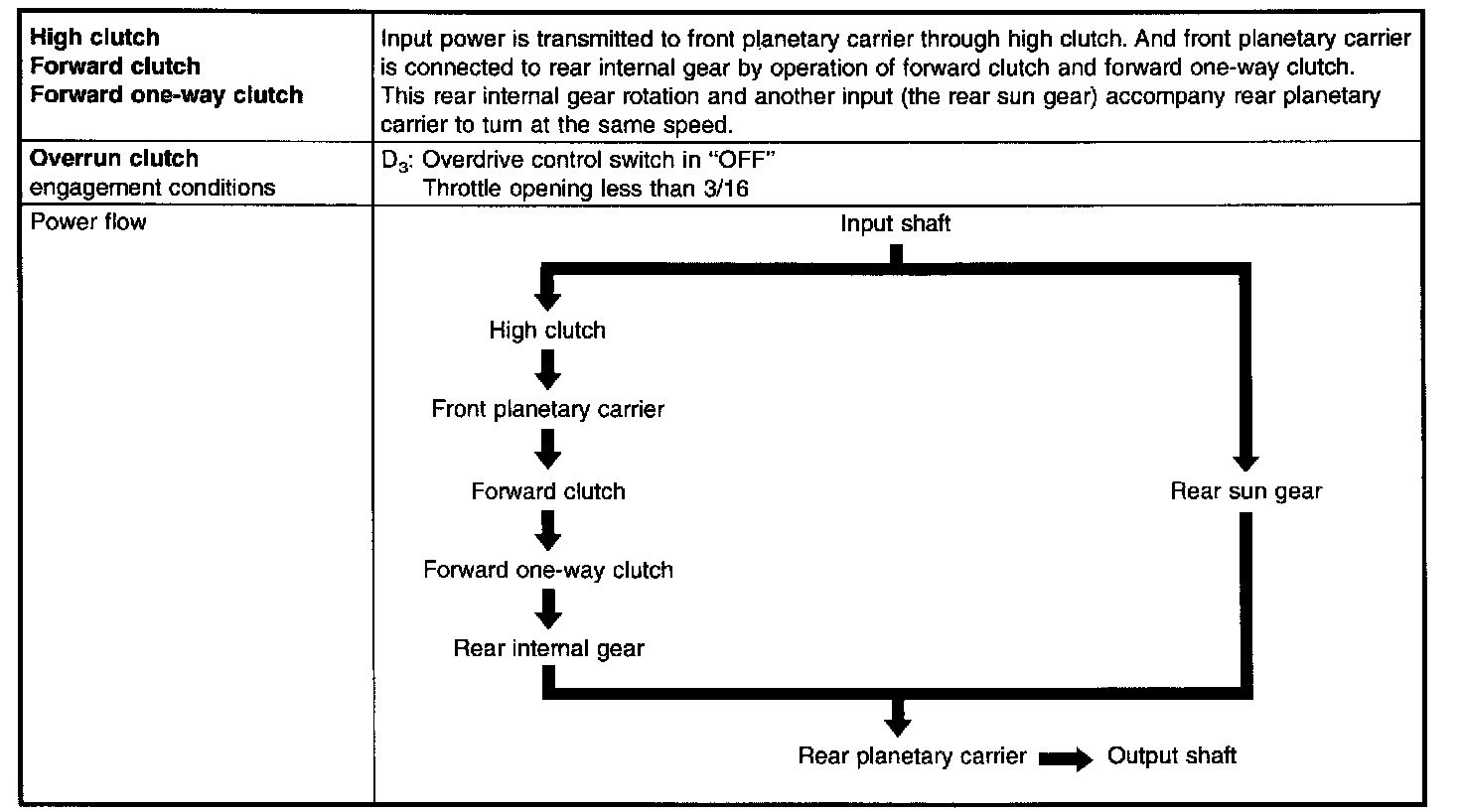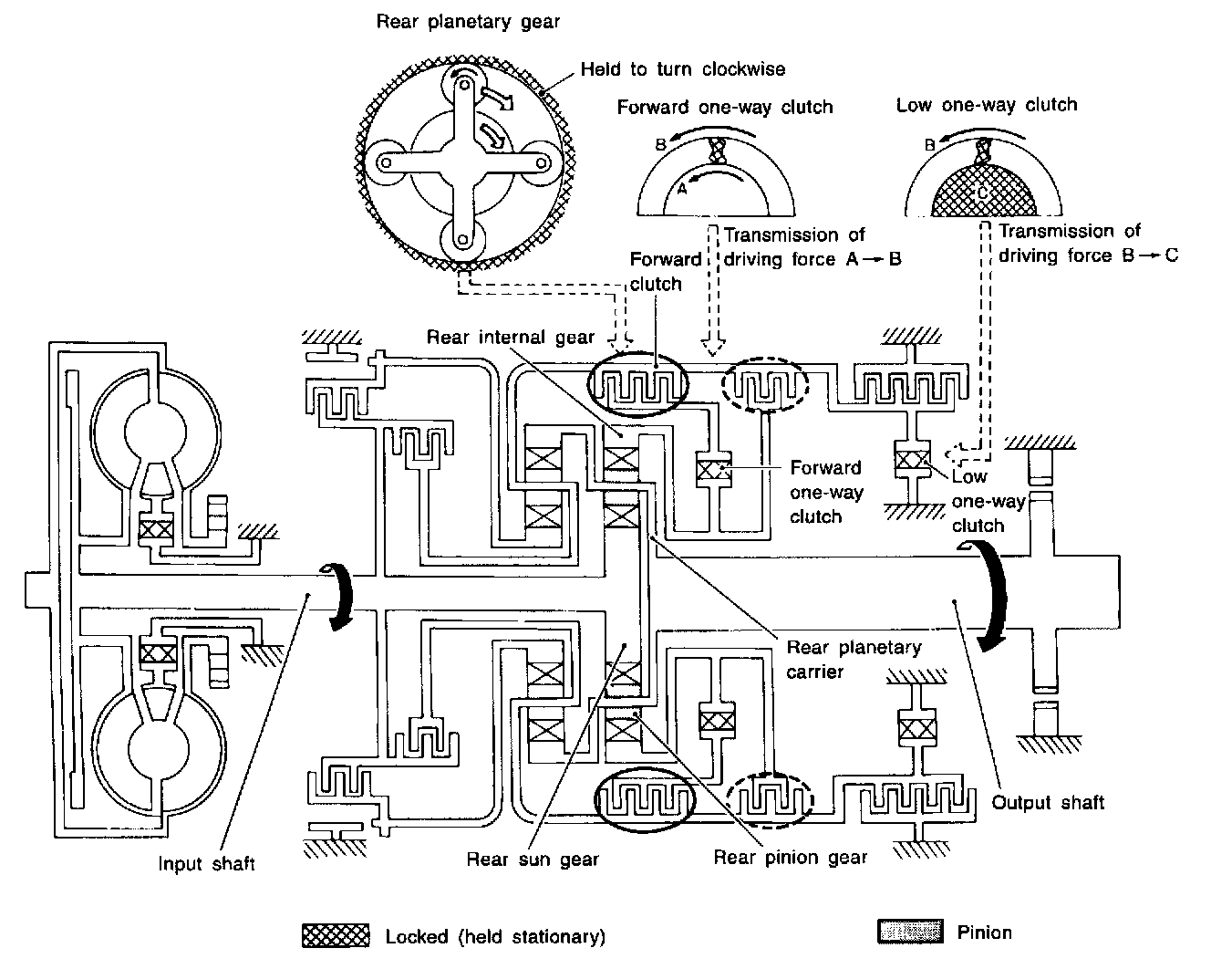 No control members operate. Power from the input shaft is not transmitted to the output shaft since the clutch does not operate.