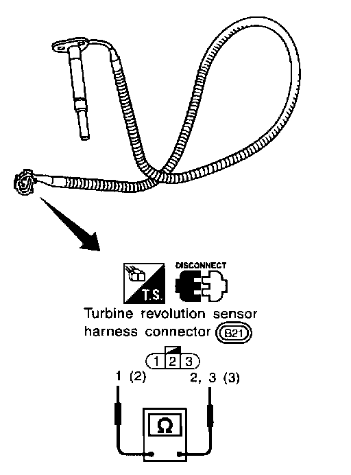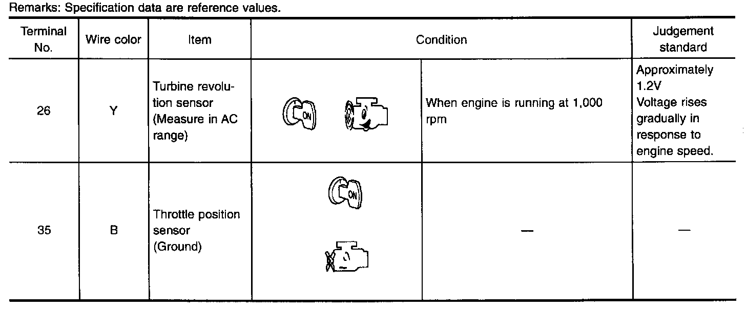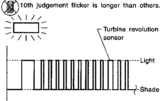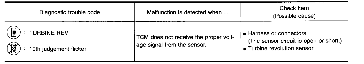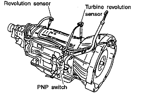 The turbine revolution sensor detects input shaft rpm (revolutions per minute). It is located on the input side of the automatic transmission. The vehicle speed sensor A/T (Revolution sensor) is located on the output side of the automatic transmission. With the two sensors, input and output shaft rpms are accurately detected. The result is optimal shift timing during deceleration and improved shifting.