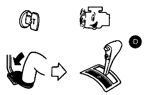 2. Start engine, apply foot brake, place selector lever in "D" position and wait a few minutes.