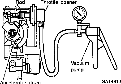2. Connect the handy type vacuum pump to the throttle opener and apply vacuum -25.3 kPa (-190 mm Hg, -7.48 inch Hg).