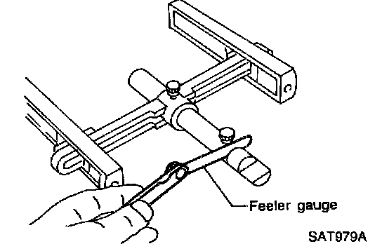 d. Remove Tool and use feeler gauge to measure gap between gauging cylinder and gauging plunger. This measurement should give exact total end play.
