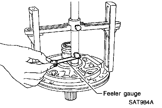d. Use feeler gauge to measure gap between gauging plunger and gauging cylinder. This measurement should give you exact reverse clutch drum and play.