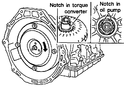 b. Install torque converter while aligning notches and oil pump.