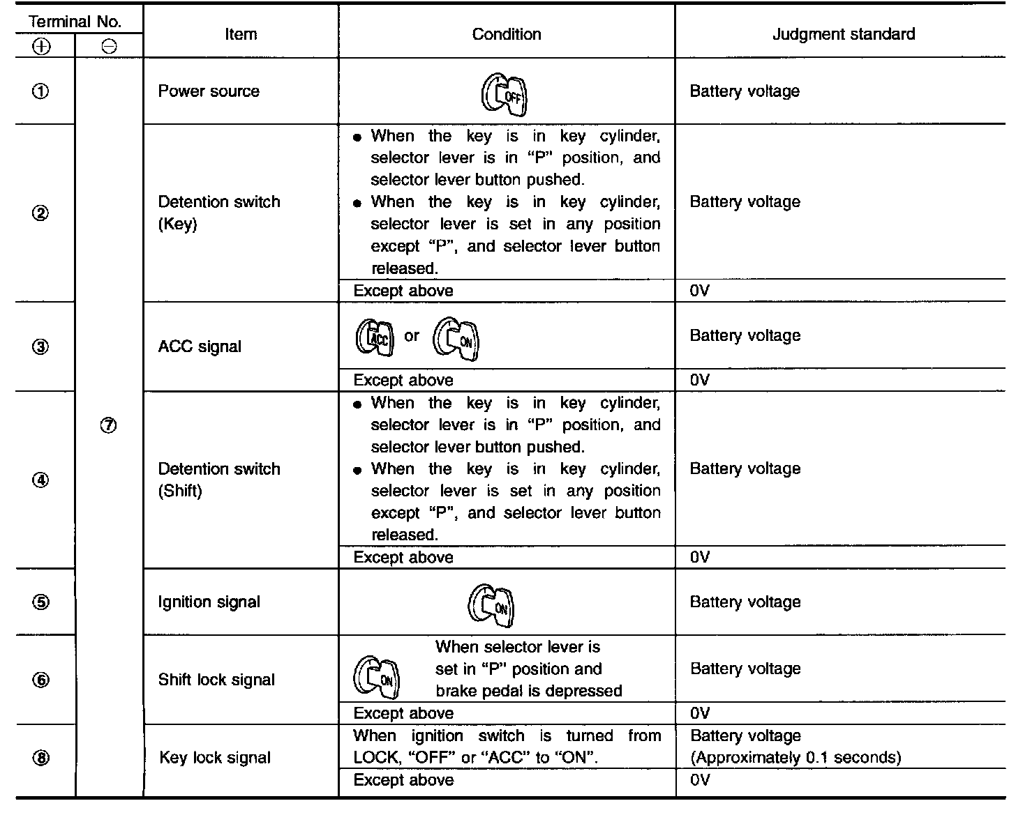 Shift Lock Control Unit Inspection Table