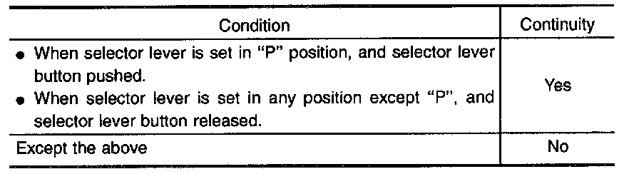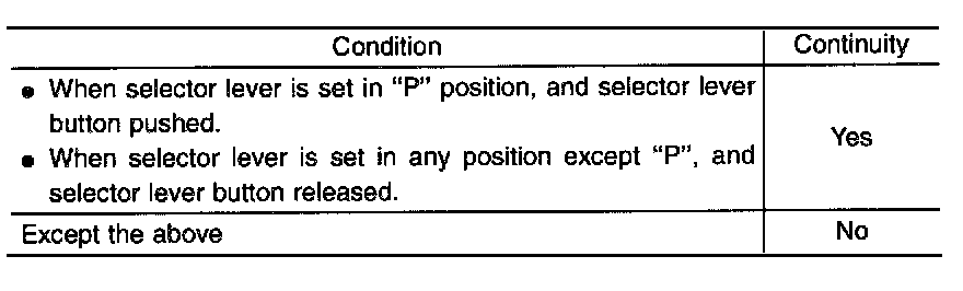 With the key switch turned to "ON", the selector lever cannot be shifted from "P" (parking) to any other position unless the brake pedal is depressed.