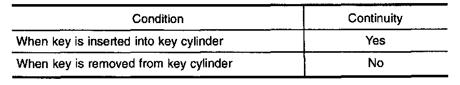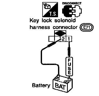 - Check operation by applying battery voltage to key lock solenoid harness connector.