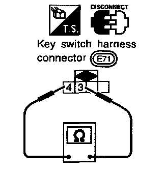 - Check continuity between terminals 03 and 04 of key switch harness connector.