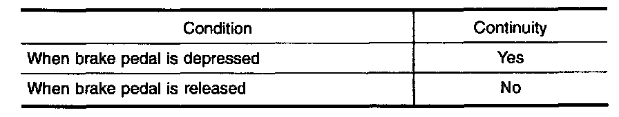 - Check continuity between terminals 01 and 02 of stop lamp witch harness connector.