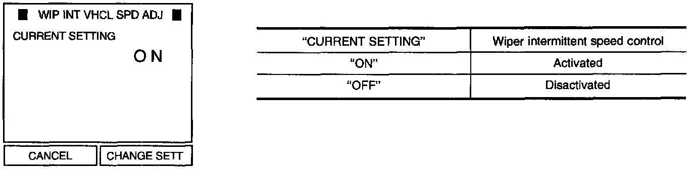 - Wiper Intermitted speed control by vehicle speed can be cancelled or resumed.