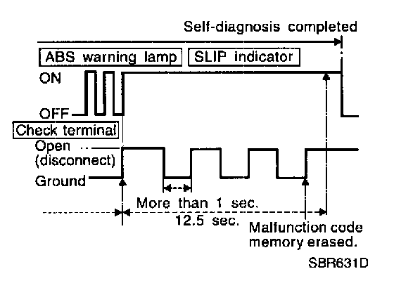 HOW TO ERASE SELF-DIAGNOSTIC RESULTS (Malfunction codes)a. Under the self-diagnostic results mode, the malfunction memory erase mode starts when the check terminal is disconnected from the ground.
