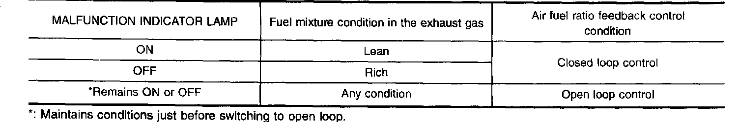 In this mode, the MALFUNCTION INDICATOR LAMP displays the condition of the fuel mixture (lean or rich) which is monitored by the front heated oxygen sensor.