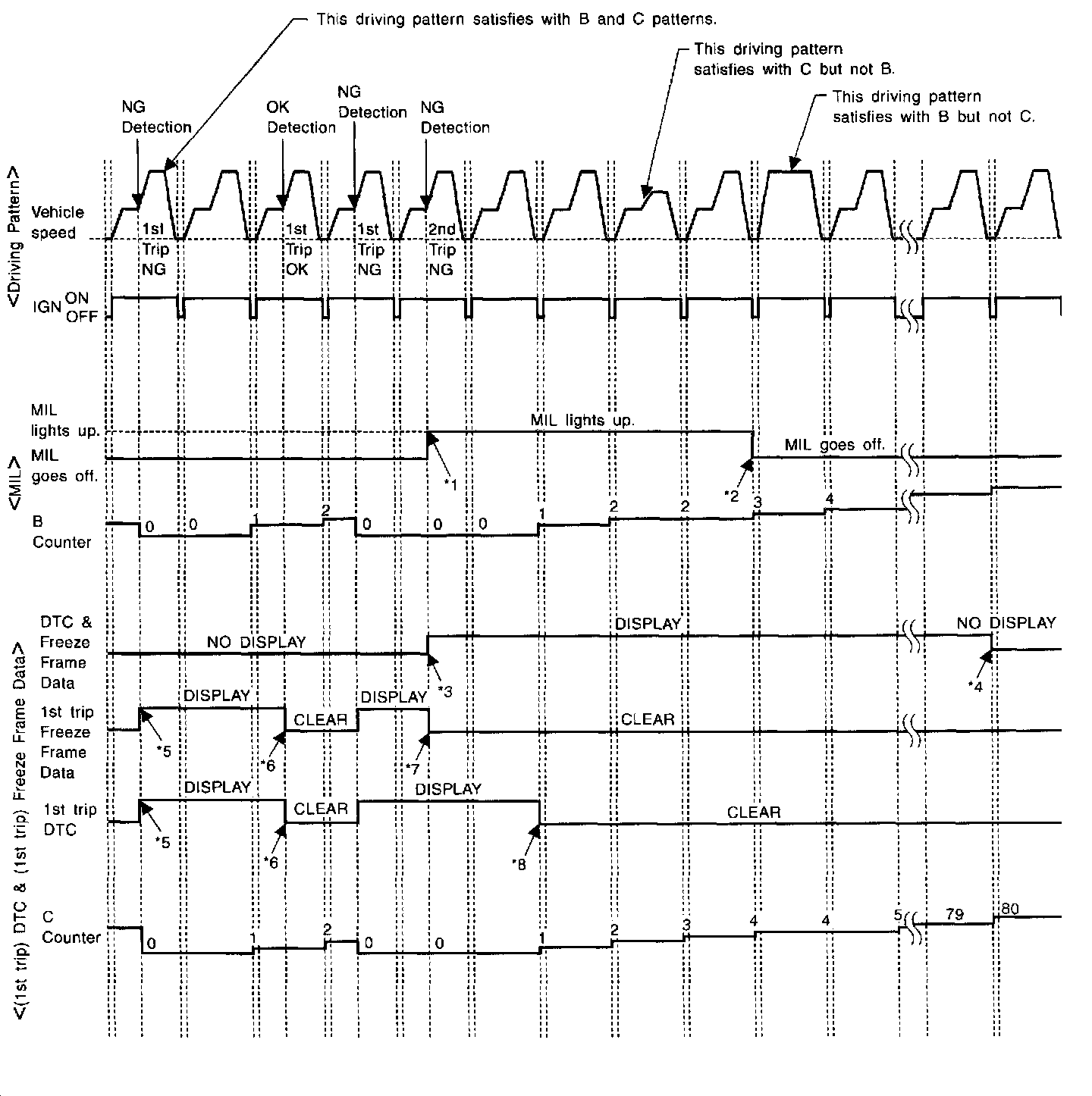 - The MIL will go off when the B counter reaches 3 (*2 in "OBD SYSTEM OPERATION CHART").