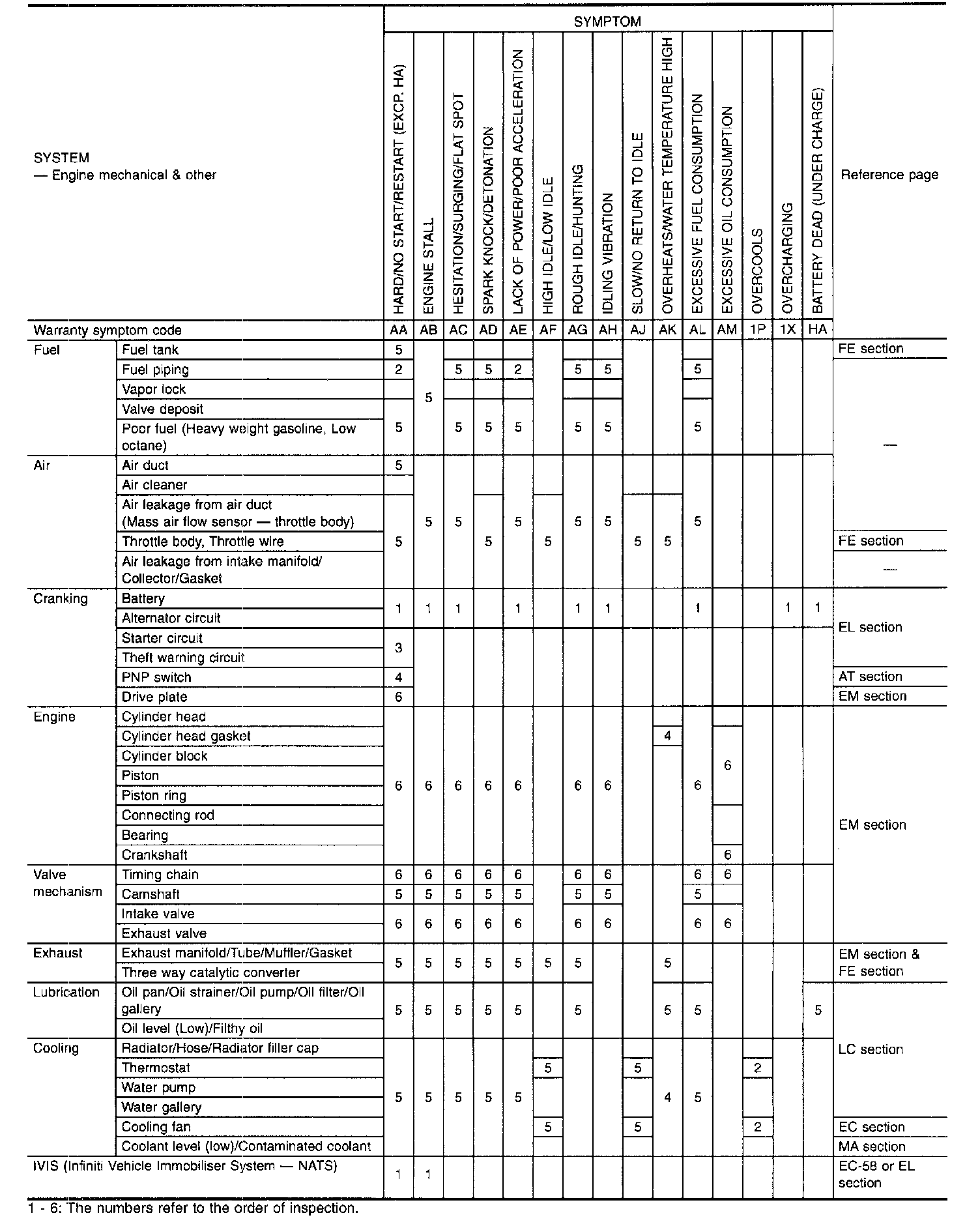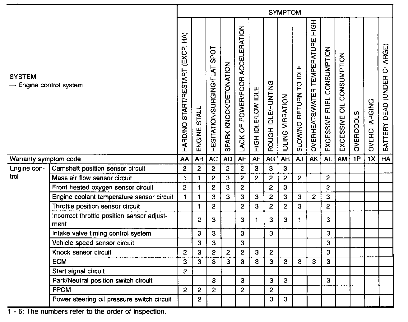 Symptom Matrix Chart
