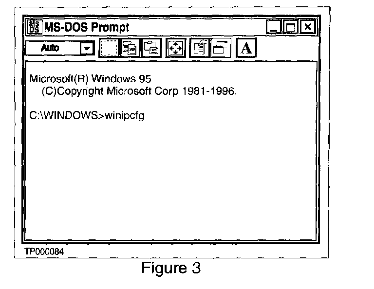B. When the MS-DOS Prompt window appears, after C:\WINDOWS> type: winipcfg (see Figure 3).