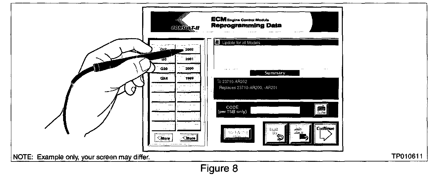 34. Select the correct ECM program to install from the choices on the CONSULT-II screen (see Figure 22).