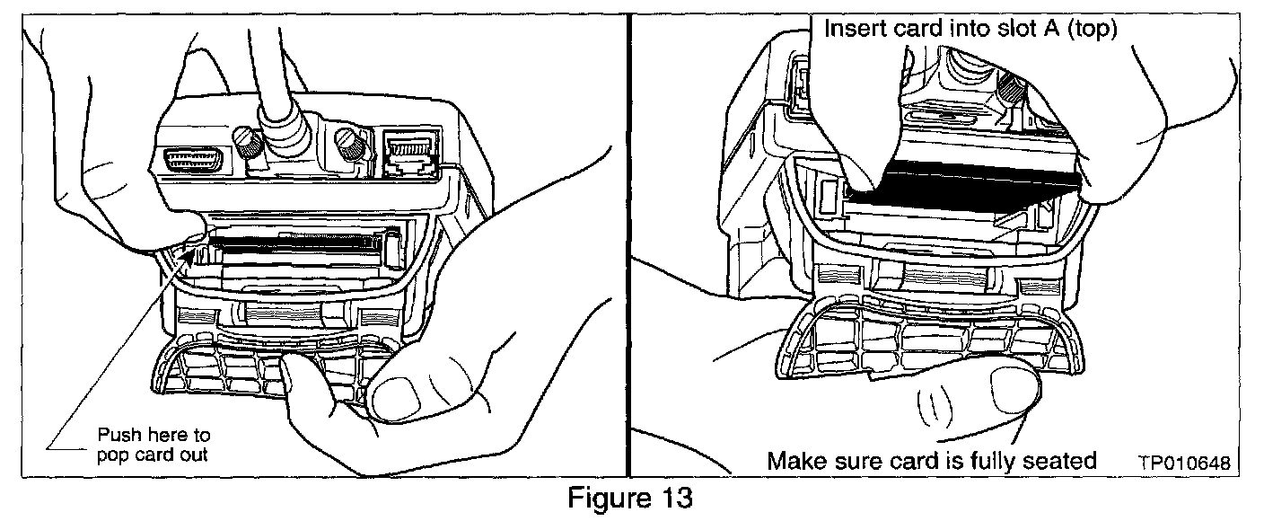 14. Remove the ECU Reprogramming card from slot A of CONSULT-II and install the Diagnostics (red/white) card into slot A (see Figure 13).