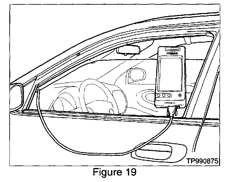 29. Roll down the driver's window part way, exit the vehicle, close the door and hang the CONSULT II unit on the outside of the window (see Figure 19).