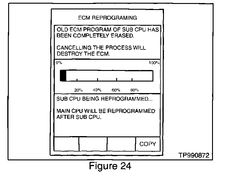 36. Press "START". After a moment the window shown in Figure 24 will appear. CONSULT-II will now turn off its screen backlight and reprogram the ECM.
