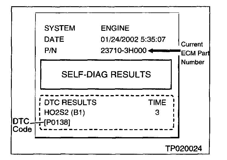 2. Print out the Self-Diagnosis results for use in ECM Part Number Check, below. See Figure 1 for an example of the CONSULT-II Self-Diagnosis printout.