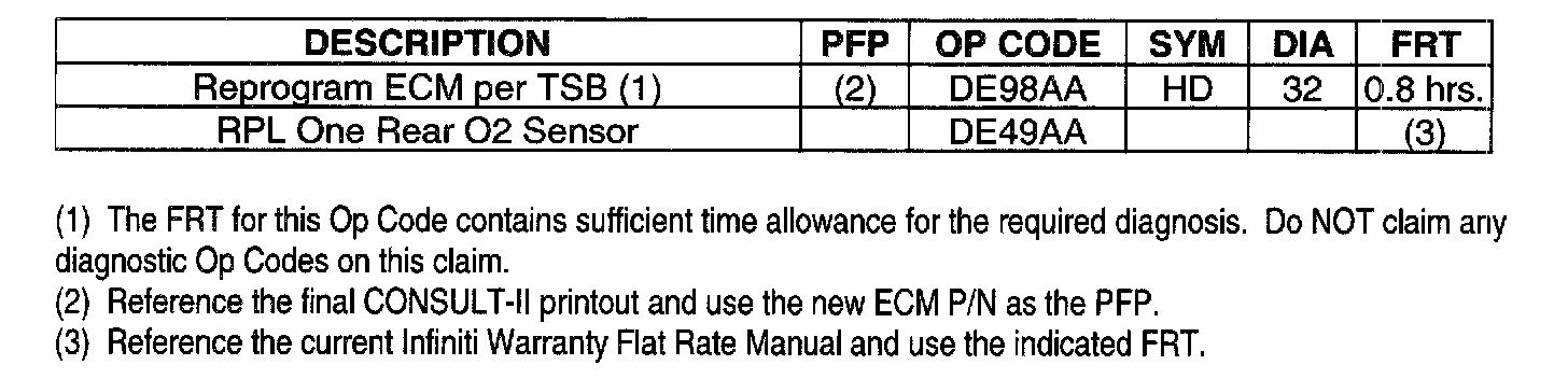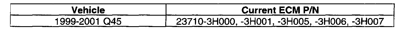 1. Compare the vehicle's current ECM P/N (from your CONSULT-II Self Diagnosis printout) to those shown under Current ECM P/N in Chart A, below: