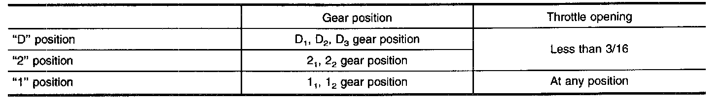 OVERRUN CLUTCH CONTROL (ENGINE BRAKE CONTROL)Forward one-way clutch is used to reduce shifting shocks in downshifting operations. This clutch transmits engine torque to the wheels. However, drive force from the wheels is not transmitted to the engine because the one-way clutch rotates idle. This means the engine brake is not effective.