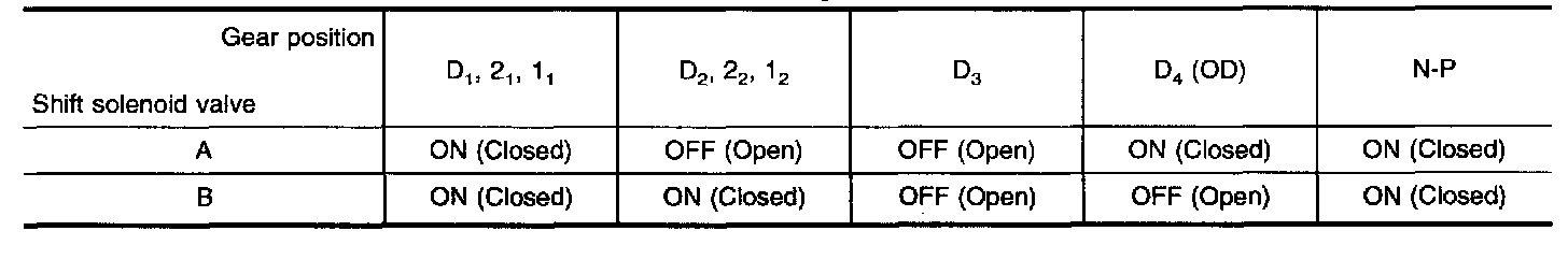 Relation Between Shift Solenoid Valves A And B And Gear Positions