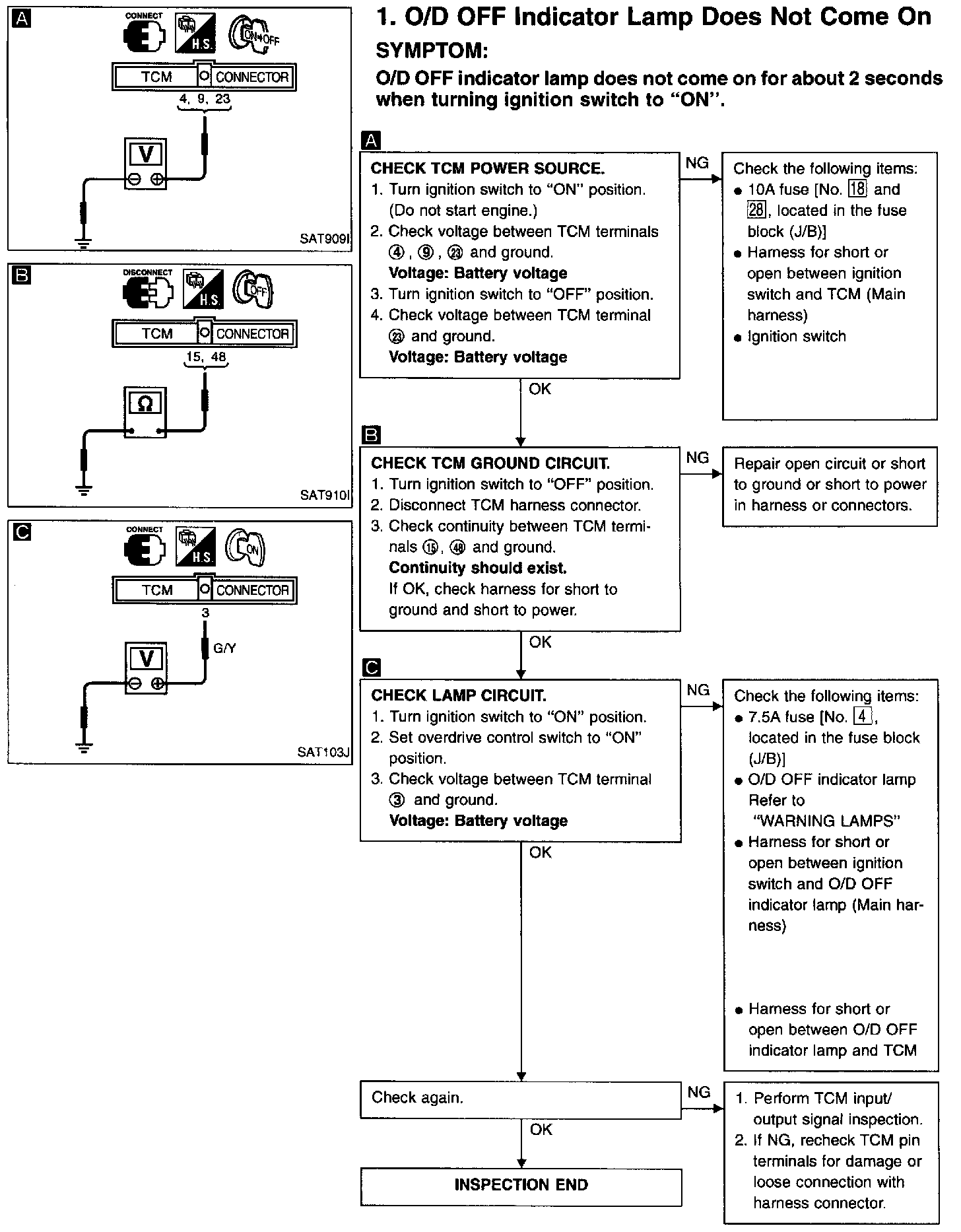 O/D OFF Indicator Lamp Does Not Come On