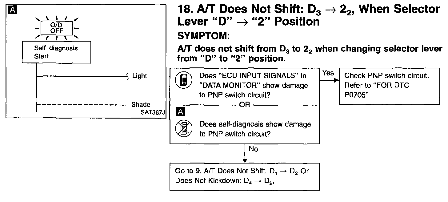 SYMPTOM: A/T does not shift from D3 to 2(2) when changing selector lever from "D" to "2" position.