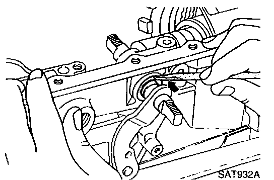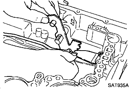 g. While pushing detent spring down, install manual plate onto manual shaft.