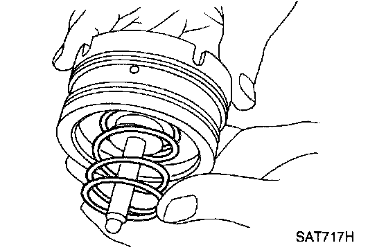 b. Install return spring for accumulator (A) onto transmission case.