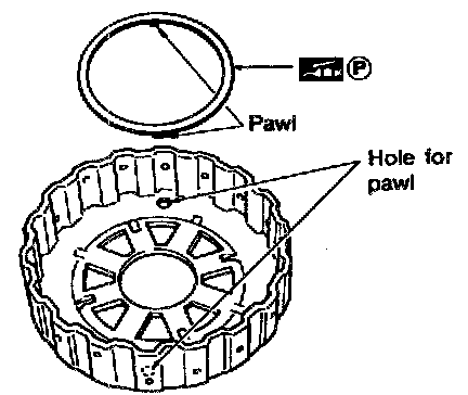 - Insert pawls of thrust washer securely into holes in overrun clutch hub.