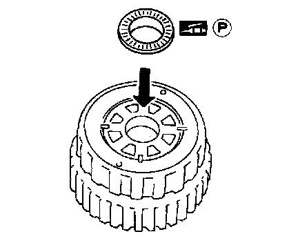 b. Install needle bearing race on front of front planetary carrier.