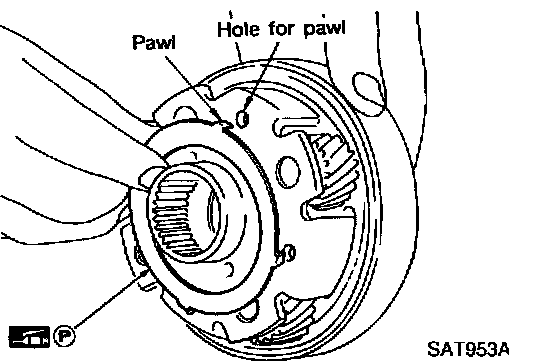 - Securely engage pawls of bearing race with holes in front internal gear.