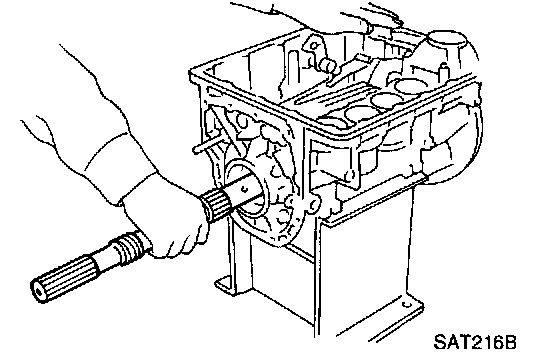 - Do not force output shaft against front of transmission case.