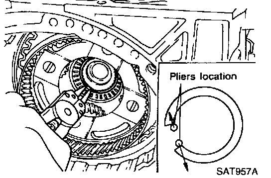 e. Install snap ring on rear of output shaft.
