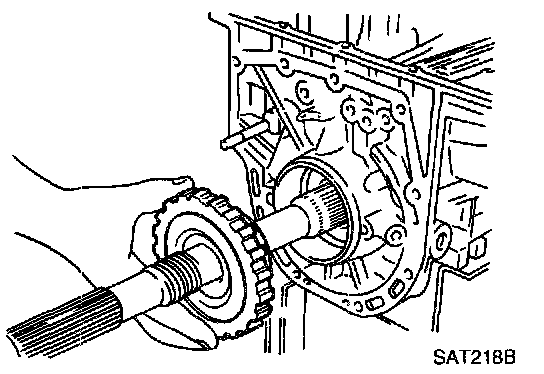 a. Insert output shaft from rear of transmission case while slightly lifting front internal gear.