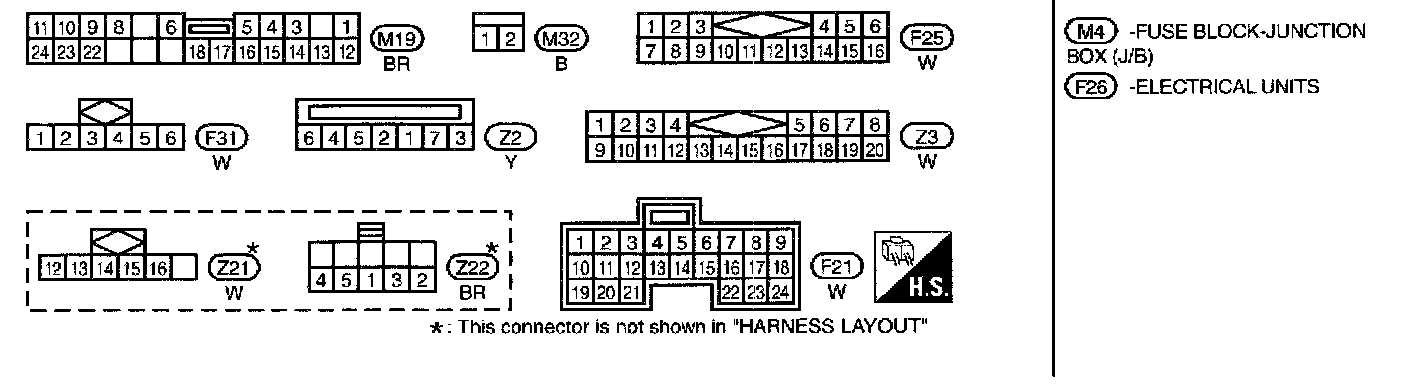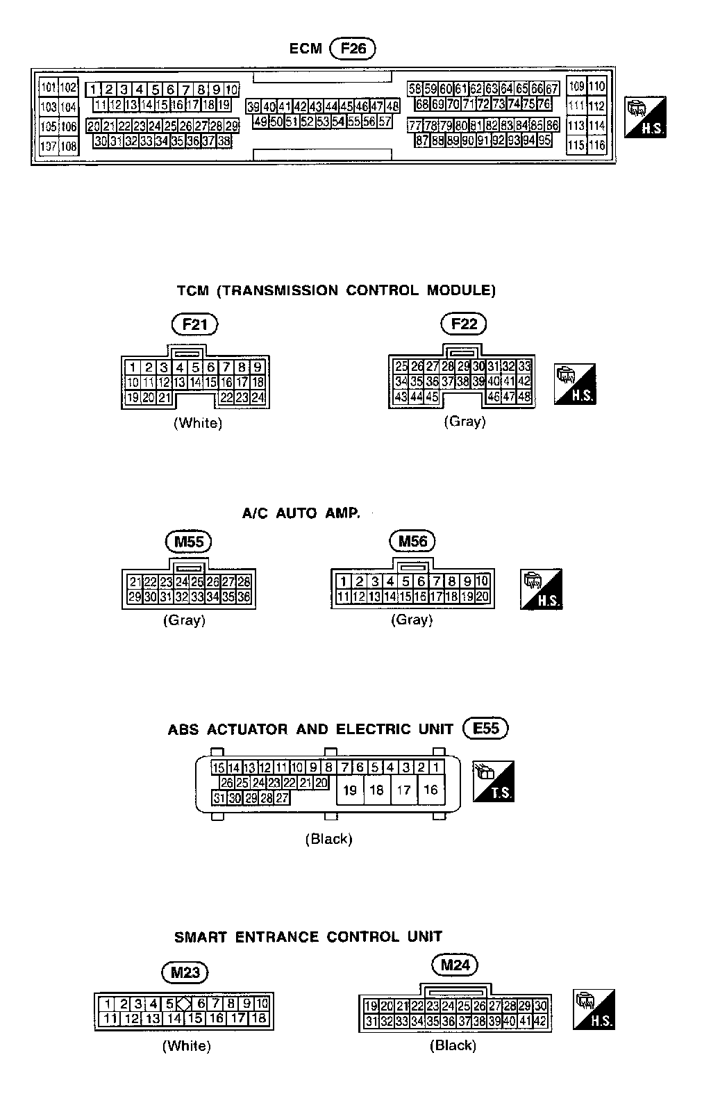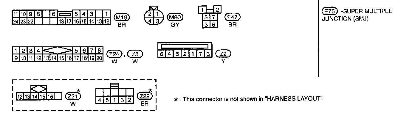 E75, M2, E72, M4, F26 Super Multiple Junction Box (SMJ), Fuse Block - Junction Box (J/B) and Electrical Units Terminal Arrangement