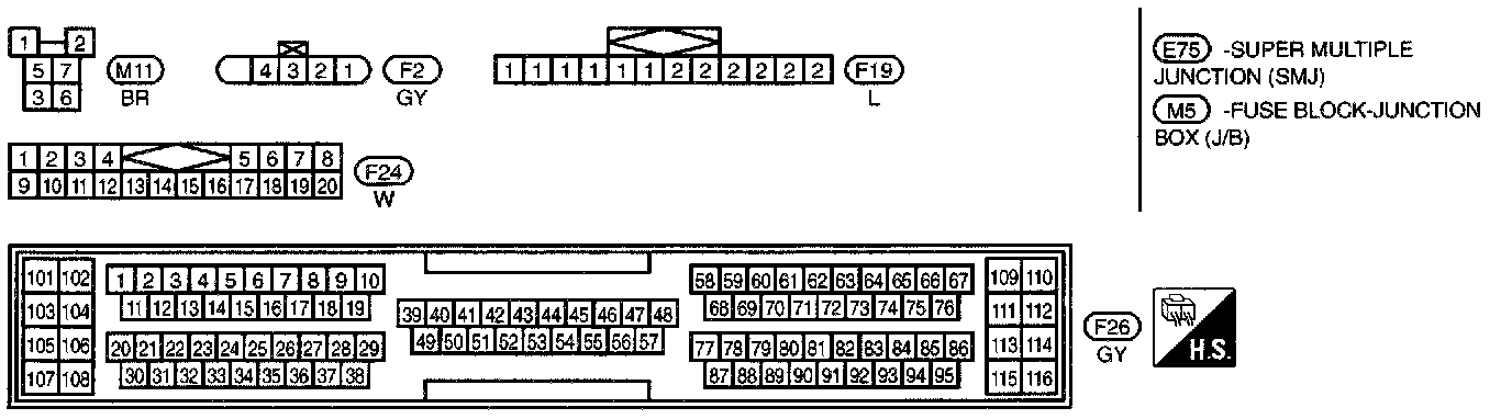 M1,M2,M3,M4,M5,B1,E71,E72,E73 Connector Views: