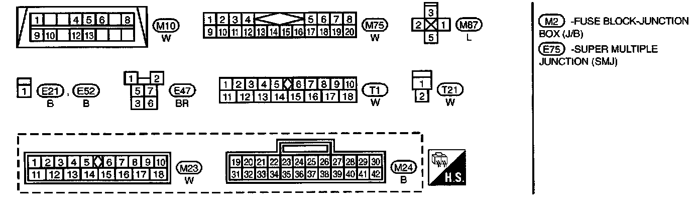 E75, M1, M2, M3, E72 Super Multiple Junction and Fuse Block - Junction Box (J/B) Terminal Arrangement