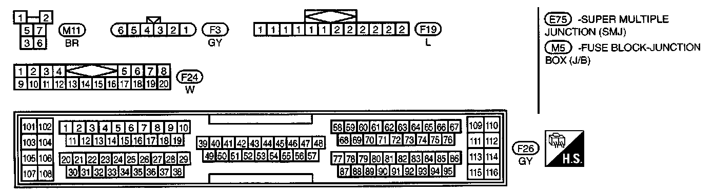 M1,M2,M3,M4,M5,B1,E71,E72,E73 Connector Views: