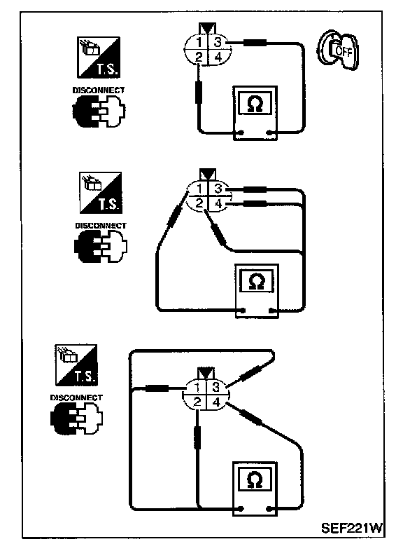 Check resistance between terminals 3 and 1.