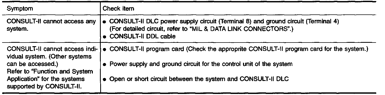 If the CONSULT-II cannot diagnose the system properly, check the following items.