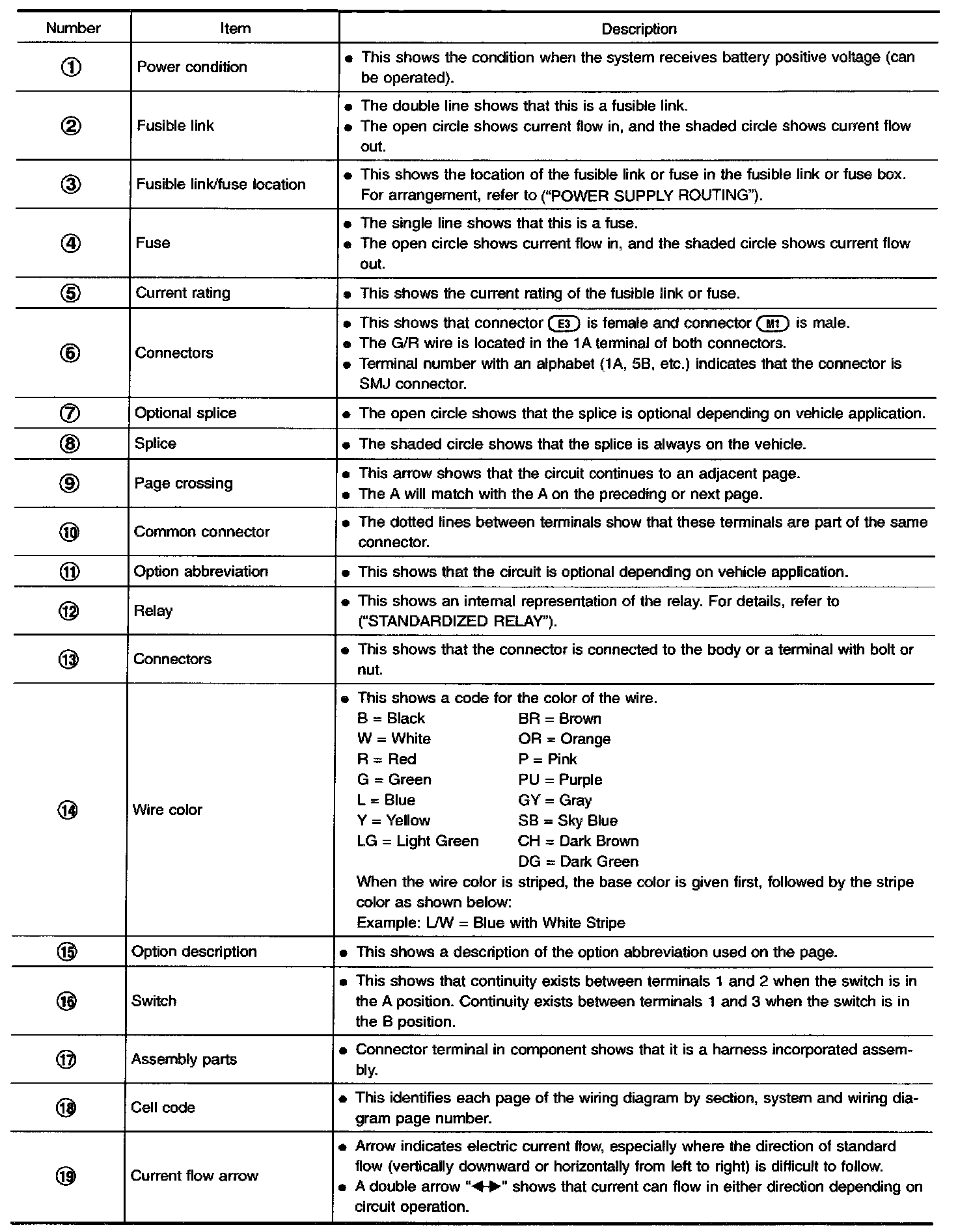 WIRING DIAGRAM LEGEND