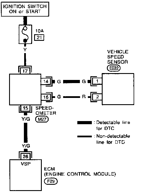 - A line with less weight (thinner line) represents a "non-detectable line for DTC". A "non-detectable line for DTC" is a circuit in which ECM cannot detect its malfunctions with the on board diagnostic system.